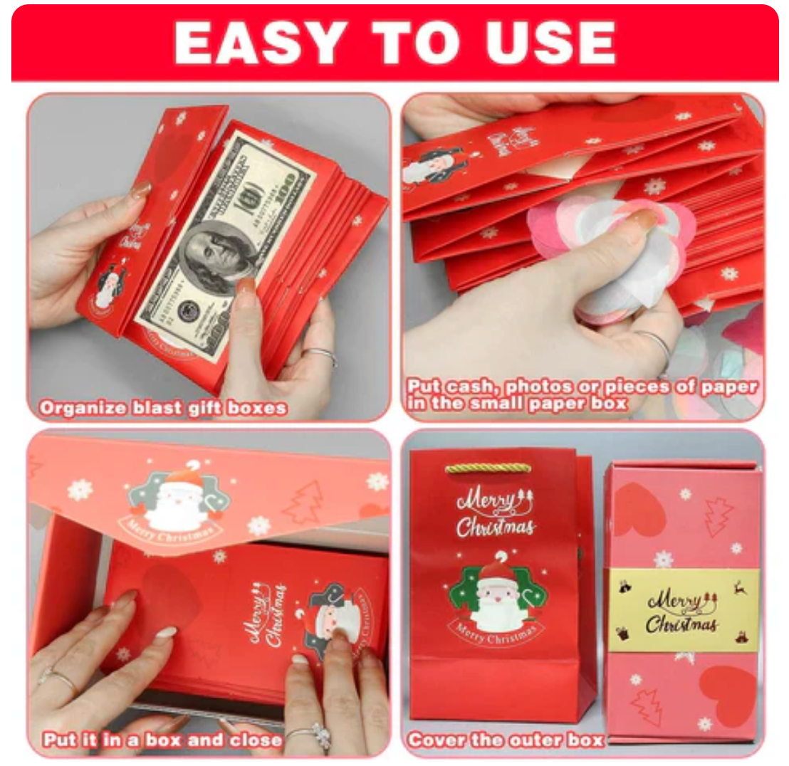 🎄Suitable for All Ages: This Christmas Surprise Box is perfect for kids and adults alike.Watch as even bystanders are filled with joy and excitement when they see these pop-up boxes in action!