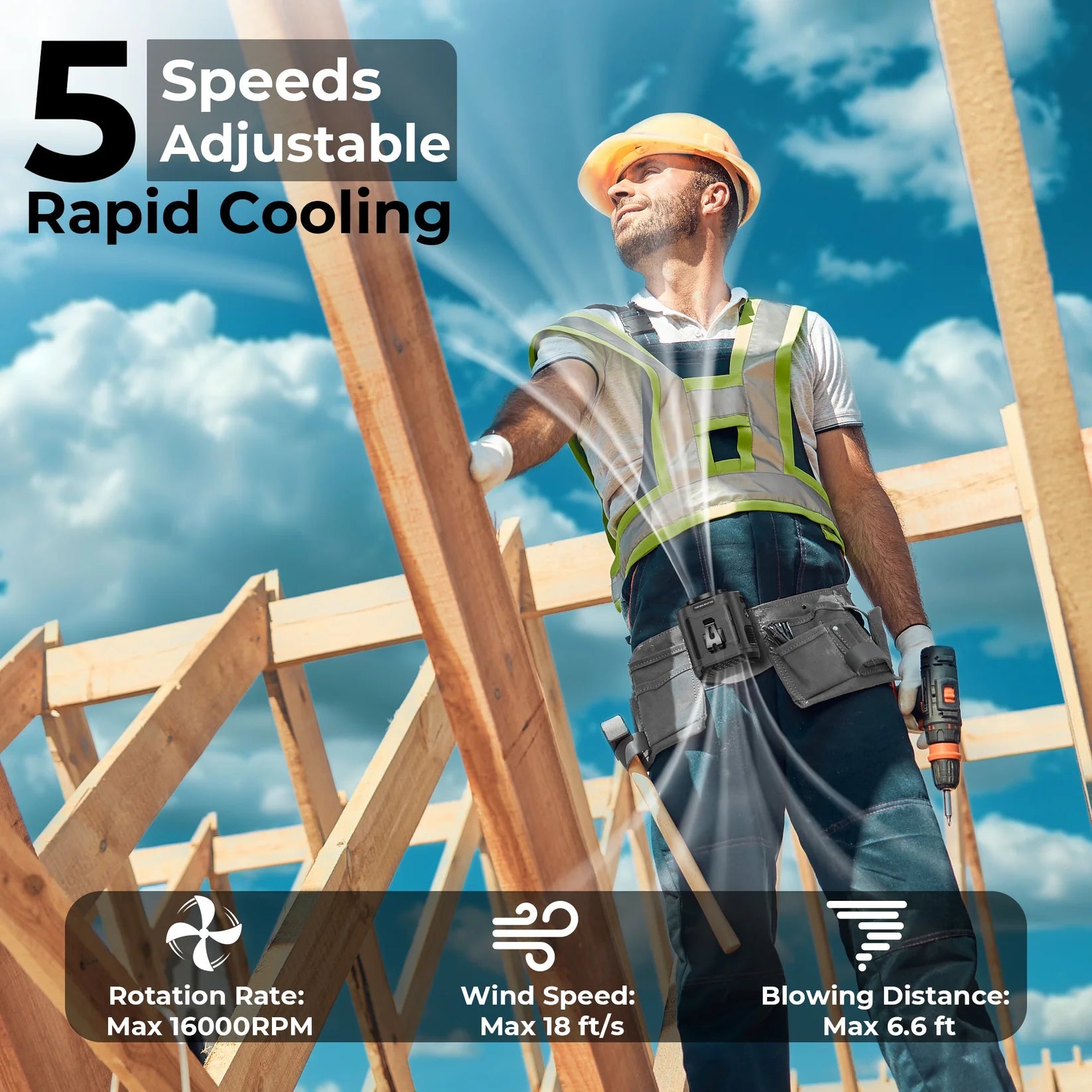 Featuring an upgraded high-speed motor, this waist-mounted fan delivers strong airflow up to 6.5m/s across three adjustable speed levels. Beat the heat instantly with targeted cooling, all while keeping your hands free to focus on the task at hand. Ideal for outdoor work, festivals, sports, or long walks in the sun.