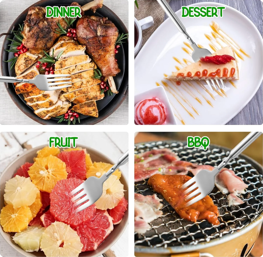 Telescopic Design: These long fork retractable allows for an adjustable extension from 8.7" to 25.4", making it ideal for safe and comfortable dining, whether you're reaching over a campfire or extending across the dinner table. Perfect for practical jokes and extending your reach.