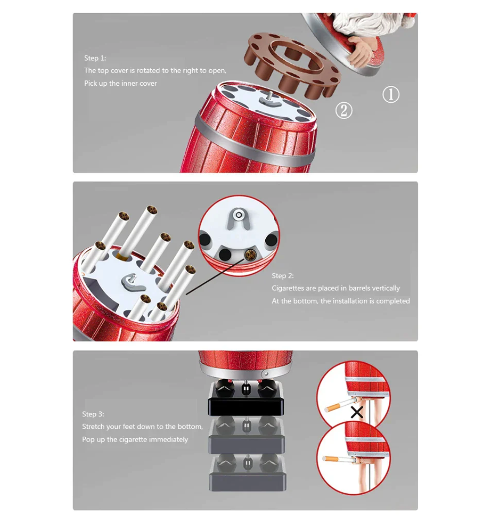 Watch the magic unfold as Santa himself delivers your cigarette with a playful pop from his iconic barrel! It's more than just a cigarette box; it's a delightful show every time you open it.